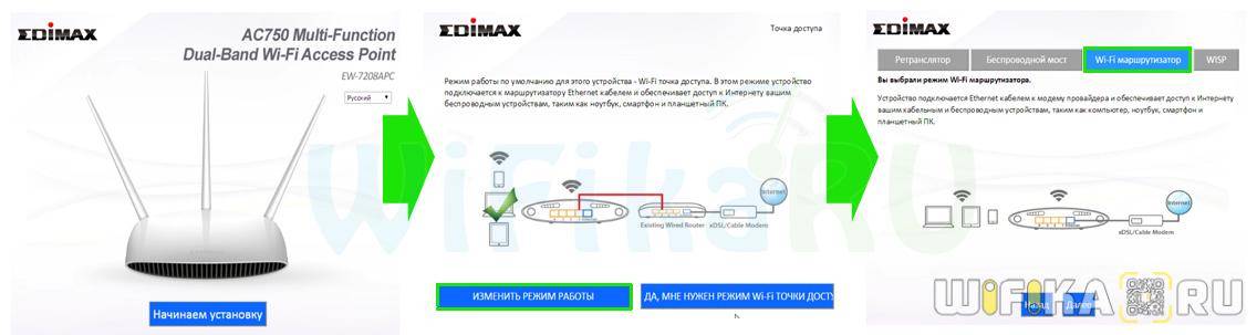 Выбираем нужный режим работы (для первоначальной настройки — «Wi-Fi маршрутизатор»).