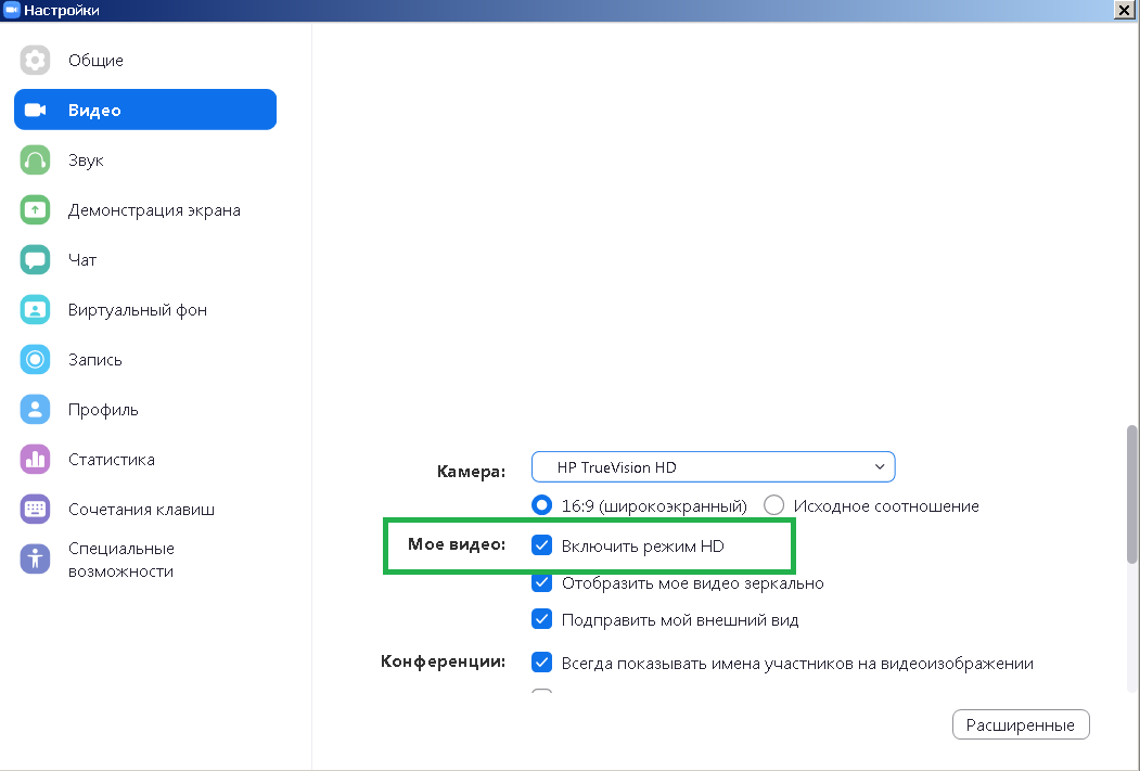 По умолчанию Zoom не передает потоковое видео в формате HD. Но если у вас высокоскоростное интернет-соединение, для лучшего качества видеозвонков можно вручную включить разрешение HD.