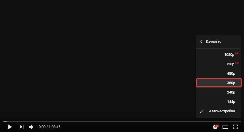 - Большинство онлайн-площадок предлагают в своих плеерах возможность изменить качество проигрываемого видео. Чем меньше разрешение, тем быстрее оно будет грузиться. В большинстве случаев качество автоматически меняется при ухудшении скорости, но, если автоматически качество не изменилась, выберите его вручную. Оптимальным вариантом без особого ухудшения картинки является 360p или 480p.