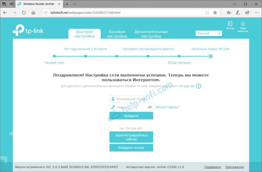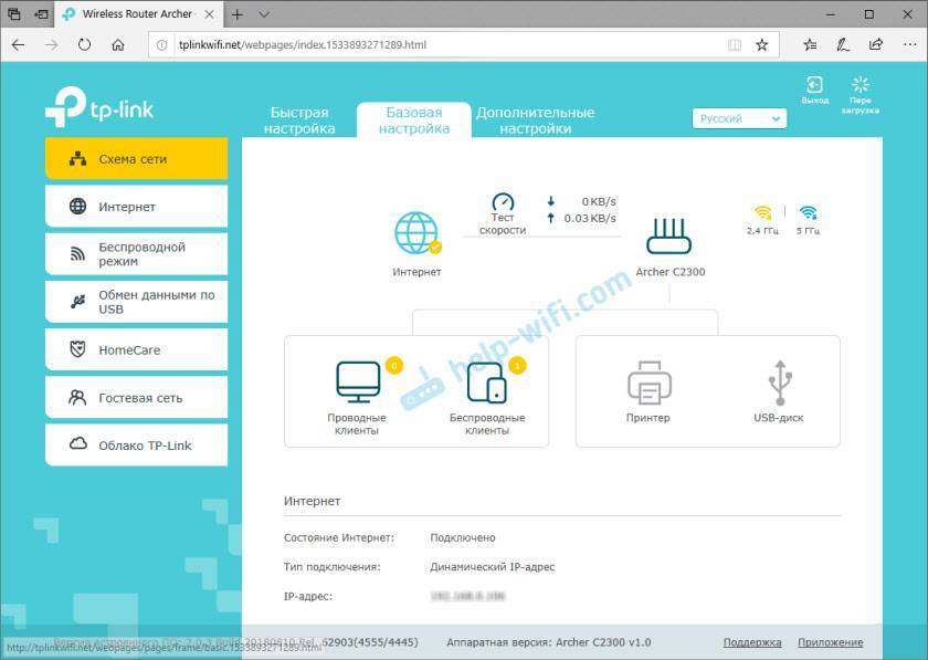 Настройка роутера завершена. А в браузере откроется главная страница веб-интерфейса TP-Link Archer C2300.