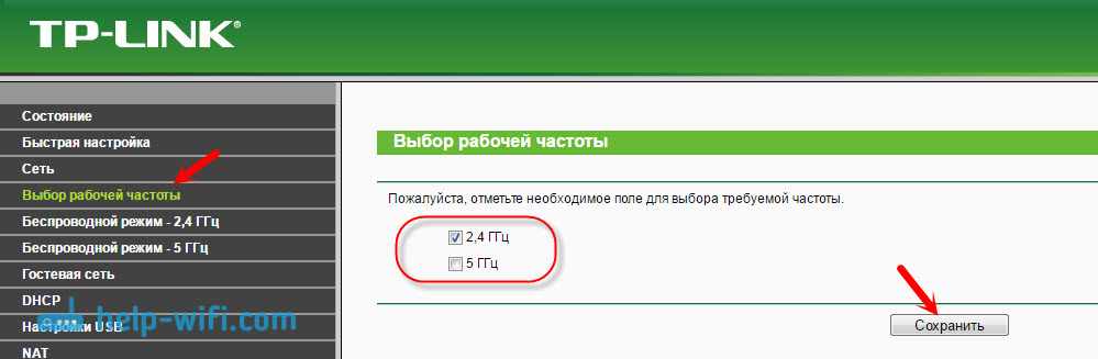Так как это двухдиапазонный роутер, то он транслирует две Wi-Fi сети. Одну на частоте 2.4 ГГц, а вторую на 5 ГГц. Если вам не нужна какая-то сеть, то предлагаю перейти на вкладку ‘Выбор рабочей частоты’, и отключить сеть на той частоте, которая вам не нужна. Достаточно просто убрать галочку, и сохранить настройки. А можете оставить обе сети. Например, старые устройства подключать к 2.4 ГГц, а новые, которые поддерживают, к Wi-Fi 5 ГГц.