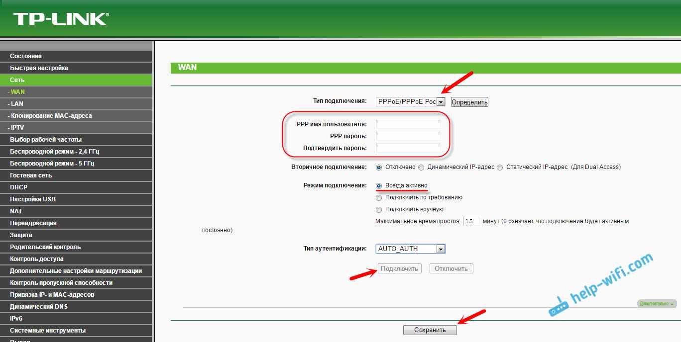 Настройка подключения PPPOE на роутере TP-Link Archer C20 AC750 .
