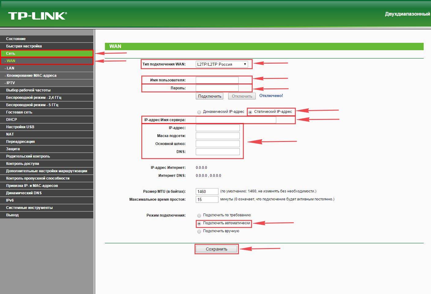 Настройка подключения L2TP со статическим IP-адресом на роутере TP-Link Archer C20 AC750. Статический ip адрес предоставляется в двух случаях: вы юридическое лицо, либо вы заказали доп. услугу у провайдера.