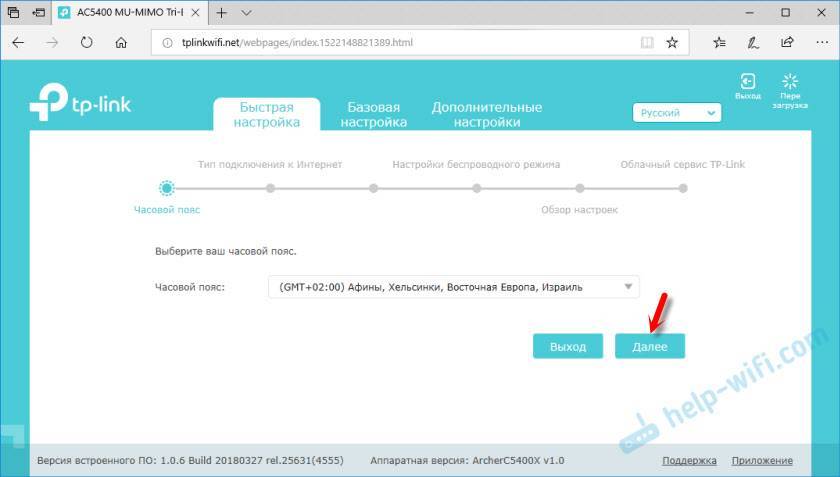 В первом окне необходимо придумать и установить пароль, который будет защищать настройки нашего TP-Link Archer C5400X. Там же можете сразу сменить язык.