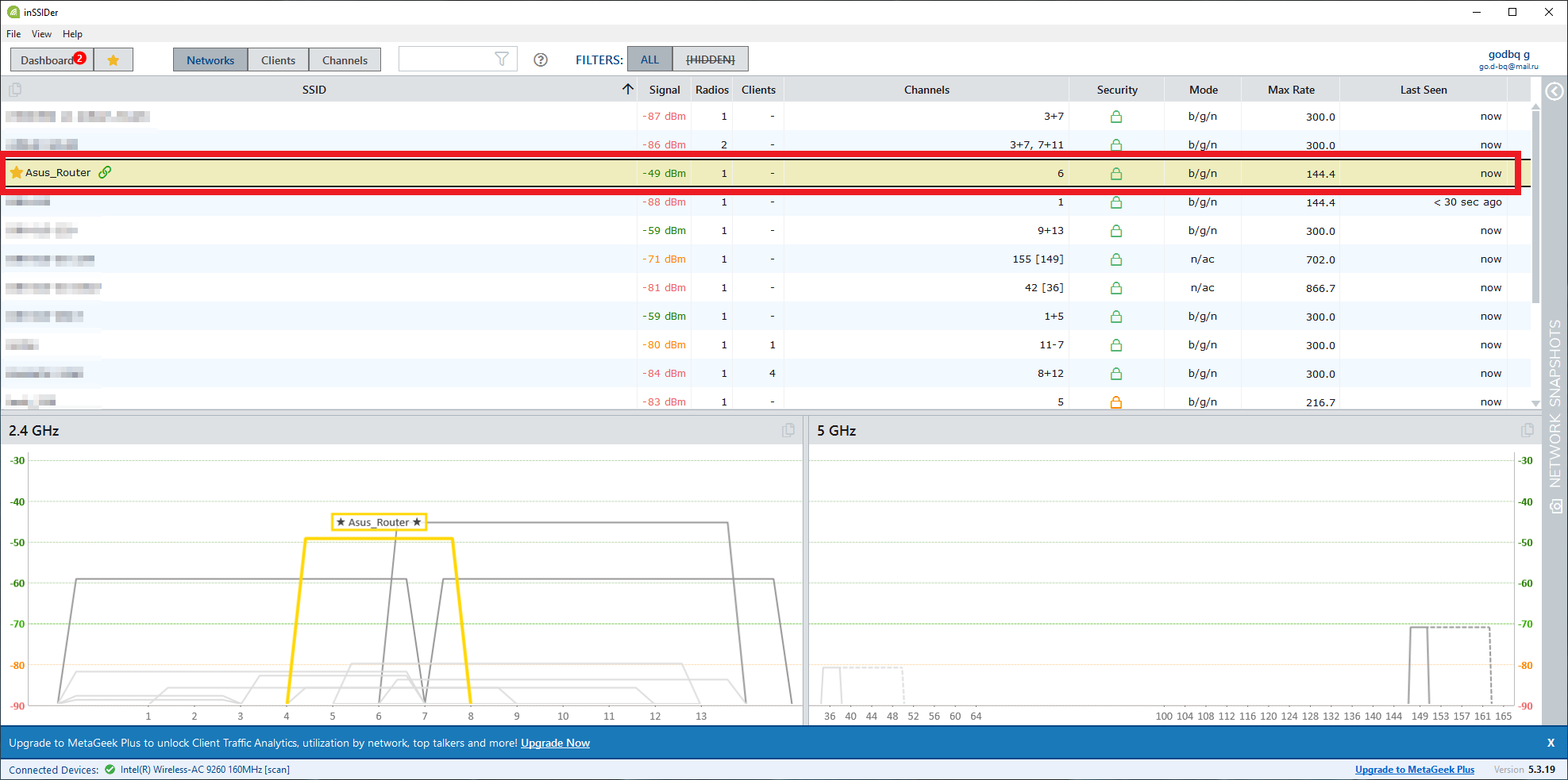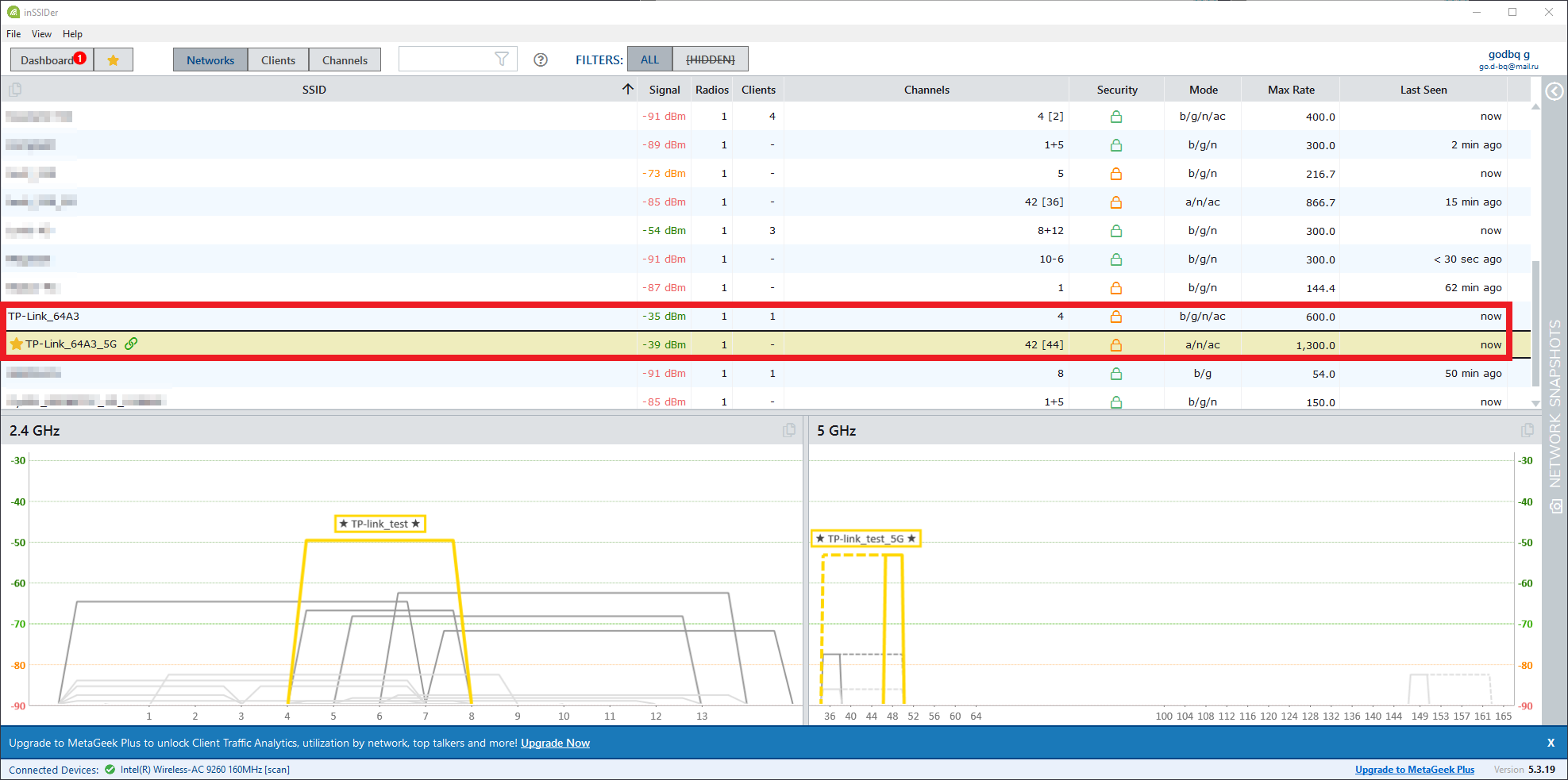Второй тест – уровень Wi-Fi сигнала от маршрутизатора с компьютера в сетях 2,4 ГГц/5 ГГц.