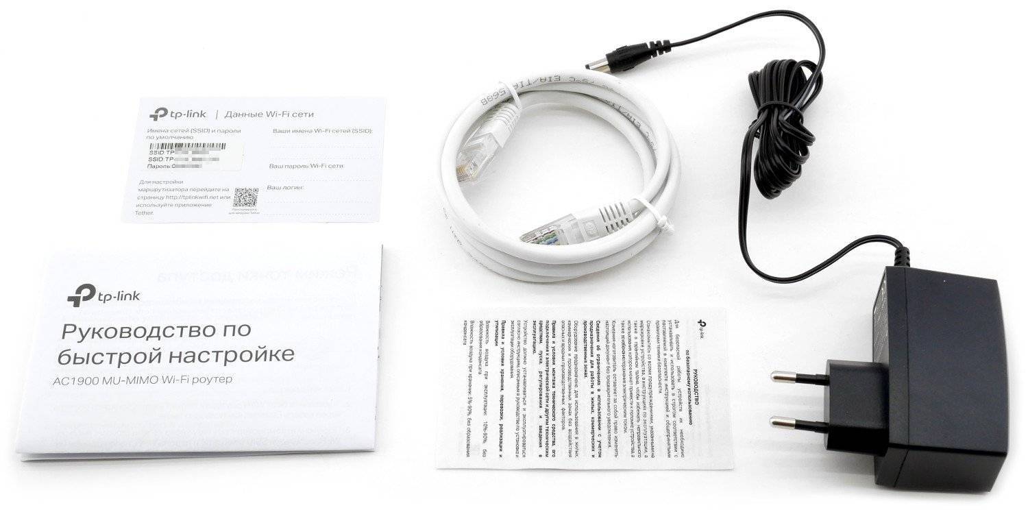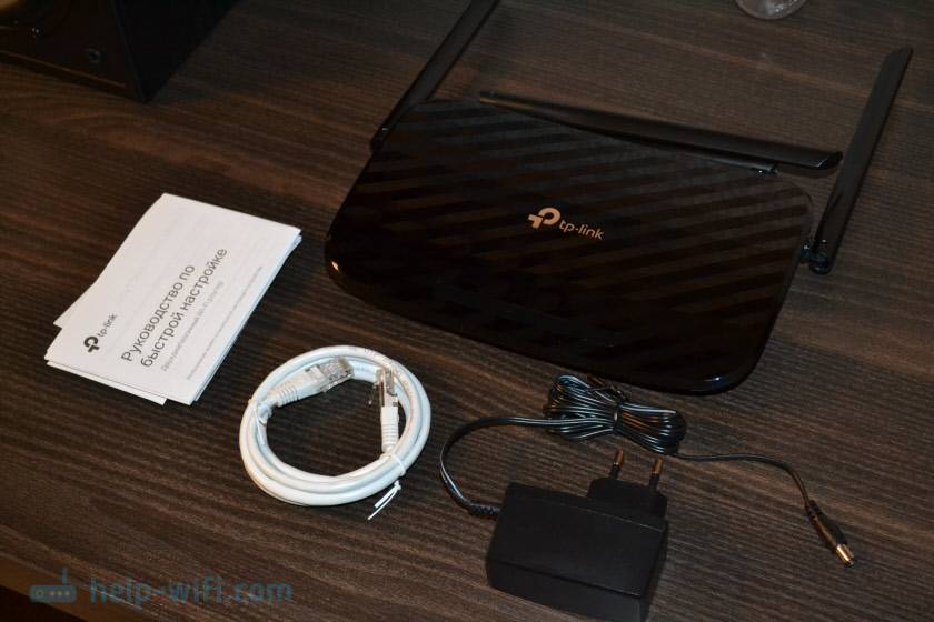 Маршрутизатор встретил нас привычно крупной картонной коробкой, характерной роутерам TP-Link. Внутри аккуратно уложены Archer C60, блок питания, Ethernet кабель и документация.