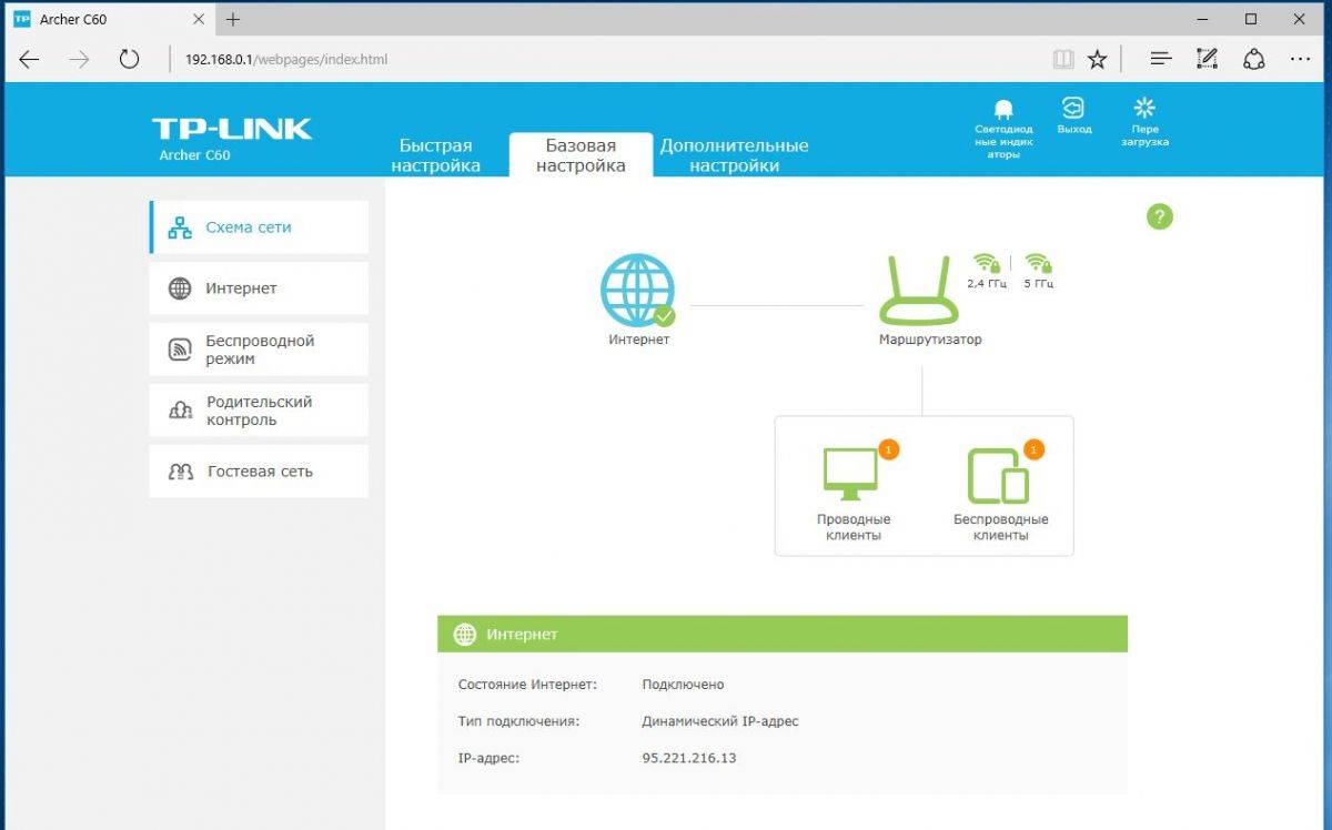 - В верхнем меню веб-интерфейса переключитесь во вкладку «Базовая настройка».