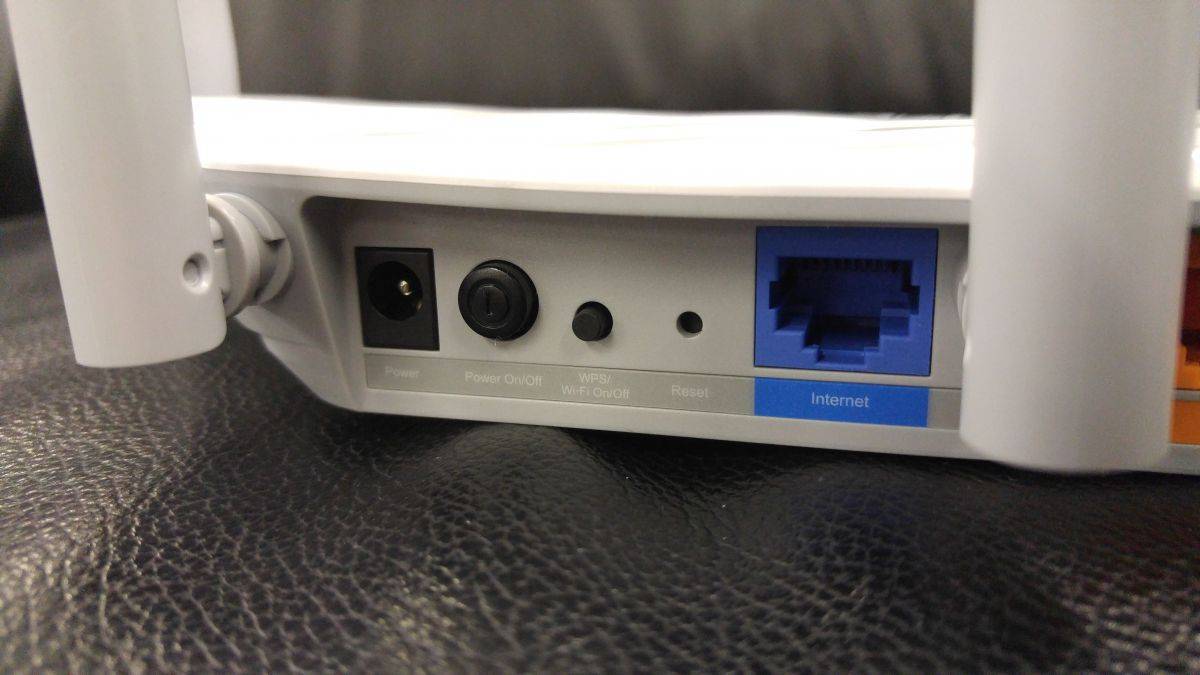 Антенны крепятся на поворотных шарнирах, что позволяет изменять их положение в широких пределах. Разъемы собраны на тыльной стороне корпуса: один WAN, четыре LAN, клавиши WPS и включения, утопленная кнопка принудительной перезагрузки и гнездо питания.