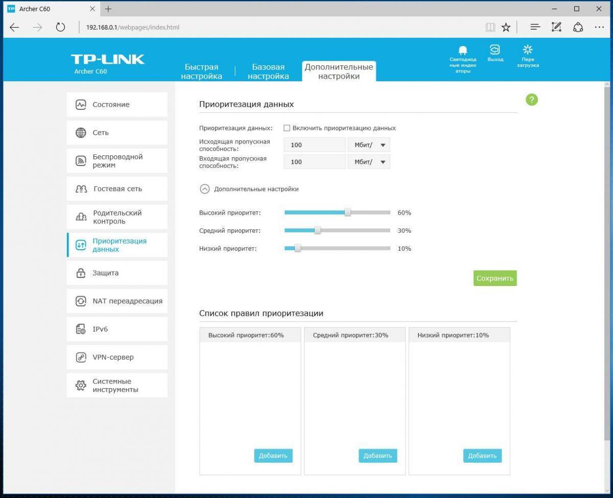 Продвинутым пользователям понравятся опции по настройке приоритета для исходящего и входящего трафика, а также формированию приоритетных правил для различных типов данных.