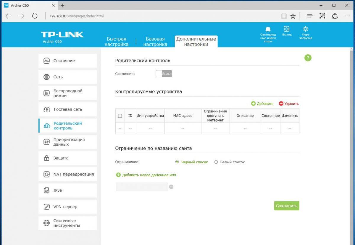Среди полезных настроек отметим расширенные возможности ПО в области родительского контроля (можно составлять черные и белые списки, указывать разрешенные DNS), а также функцию организации гостевой сети, что может пригодиться как дома, так и в офисе.