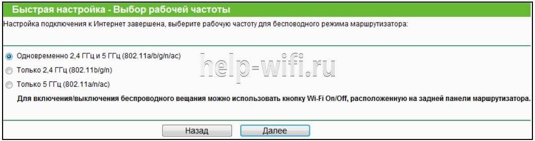 в появившемся окне выбираем частоту Wi-Fi сети;