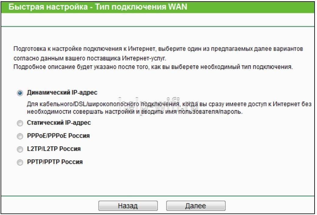 установить тип подключения, используемым вашим Интернет-провайдером;