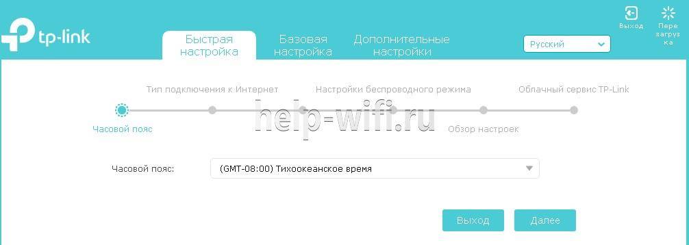 выбрать «Быстрая настройка», расположенное вверху и установить часовой пояс;