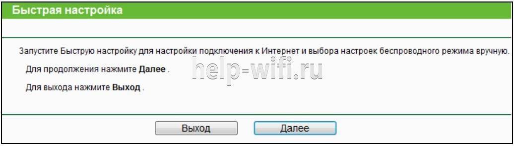 после входа в панель настроек идем в меню «Быстрая настройка» и жмем кнопку «Далее»;