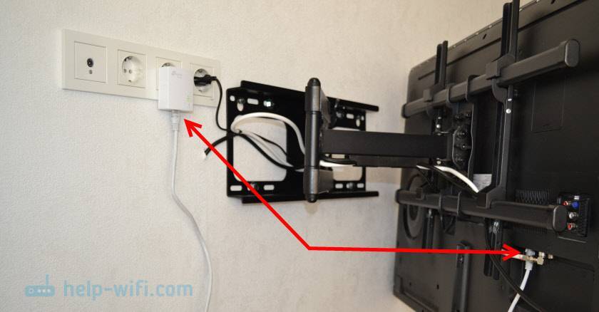 Допустим, маршрутизатор у меня размещен в коридоре, а телевизор на кухне. Мне нужно подключить телевизор к интернету с помощью кабеля. По Wi-Fi нет возможности подключиться (в телевизоре нет Wi-Fi, плохая скорость и т. д.). Проложить сетевой кабель от роутера к телевизору у меня возможности нет.