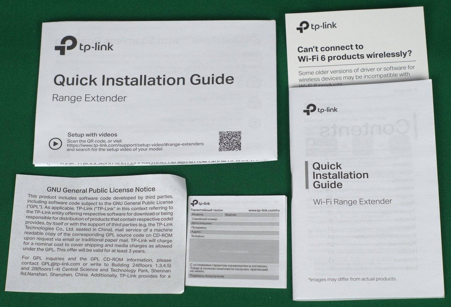 Вместе с репитером вы получите ещё: сетевой провод для кабельного подключения репитера к компьютеру, гарантийный талон и памятка по быстрой настройке.
