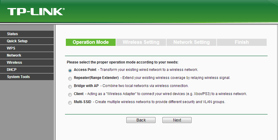 Для настройки точки доступа – выбираем Access Point. Нажимаем Next.