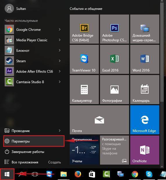 1. Нажимаем на “Пуск” потом “Параметры“.