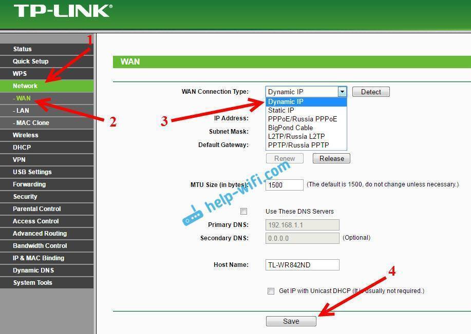 TP-LINK TL-WR842ND: настройка интернета (WAN)