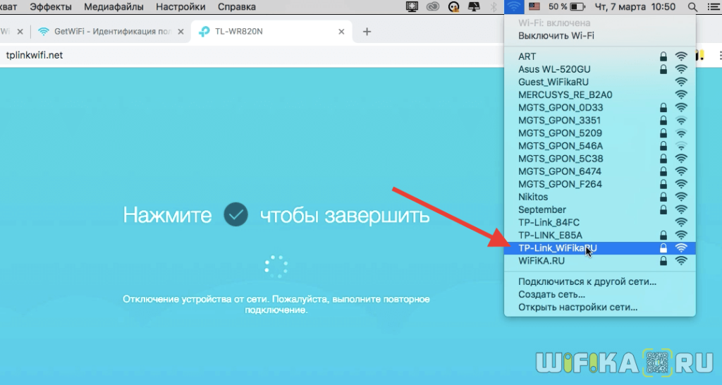 После применения всех настроек маршрутизатор перезагрузится. И нужно будет подключиться к его уже новой сети wifi.