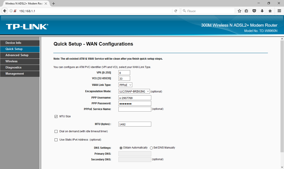 · логин (PPP Username) и пароль (PPP Password) для авторизации у провайдера (не путать с логином-паролем вашей личной беспроводной сети!).