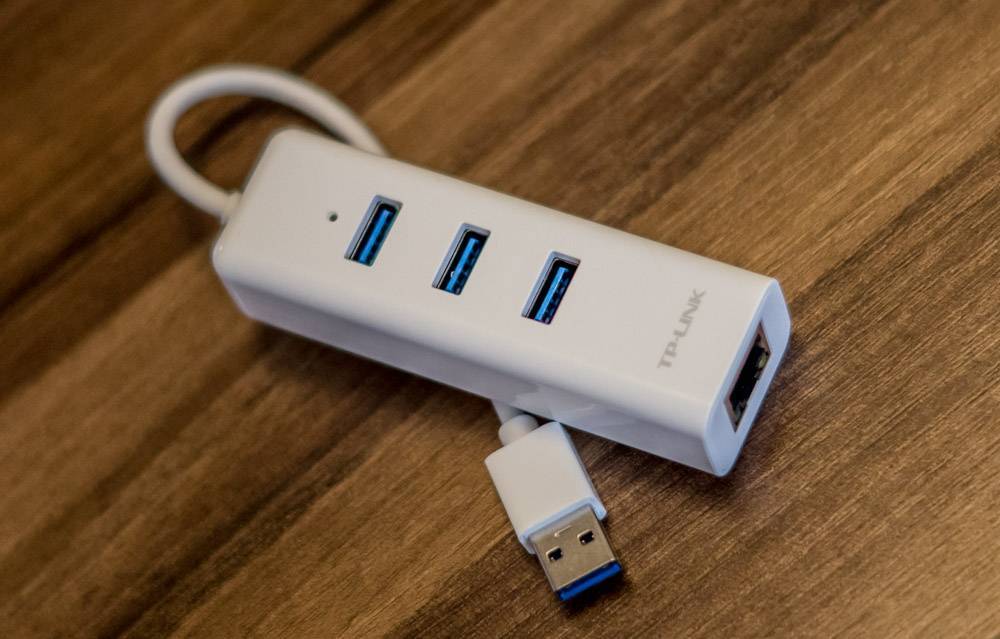 Как я уже писал выше, у меня гигабитный адаптер TP-Link UE330 Ver: 2.0 со встроенным USB-разветвителем на три порта USB 3.0: