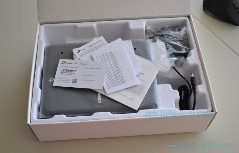 Комплектация стандартная: роутер, сетевой кабель, адаптер питания, инструкции.