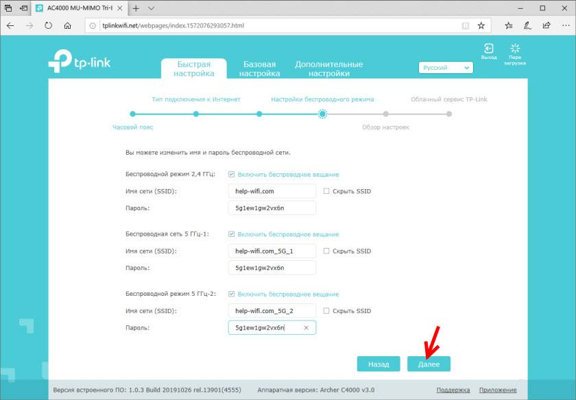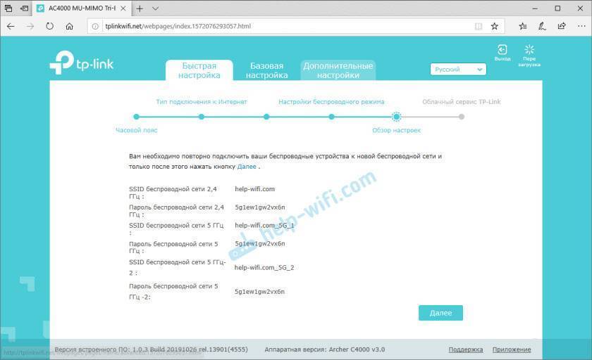 Нажмите “Next”. Вы в любой момент сможете сменить эти параметры. Если вам необходимо настроить гостевую Wi-Fi сеть, то смотрите эту инструкцию.