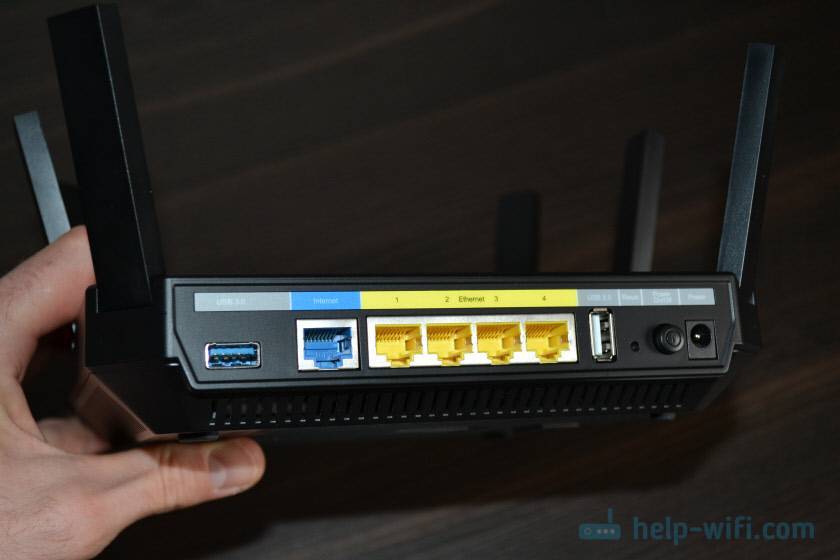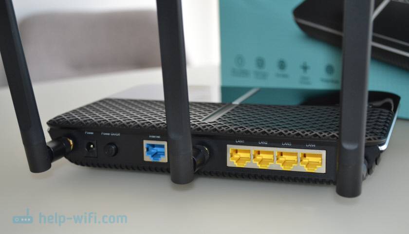 Дальше, в WAN порт (он синий) роутера подключите кабель от вашего интернет-провайдера. Вы можете подключить роутер к компьютеру или ноутбуку по сетевому кабелю, который идет в комплекте. Но, это не обязательно. Настроить роутер можно и при подключении по Wi-Fi сети.