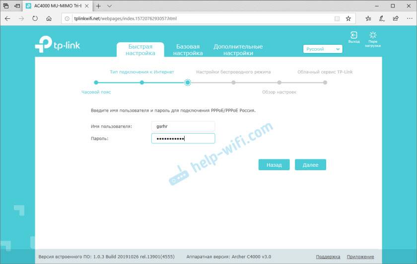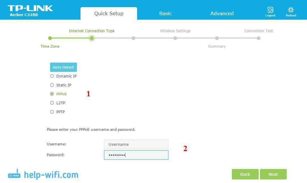 Снова появится страница авторизации, где уже нужно указать имя пользователя и пароль, которые вы установили. Откроется панель управления, и появится мастер быстрой настройки, который я советую использовать для настройки маршрутизатора. Если он не откроется, то нажмите на “Quick Setup”.