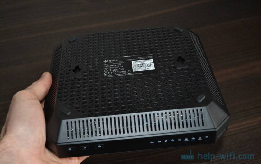 Снизу есть два отверстия, которые позволяют повесить маршрутизатор на стену.