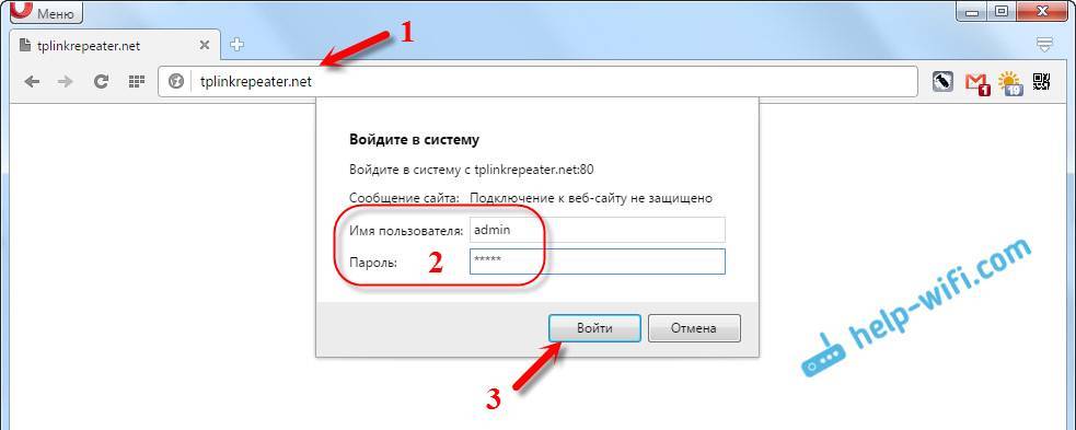 Достаточно в браузере перейти по адресу tplinkrepeater.net. Адрес для входа в настройки, заводские имя пользователя и пароль указаны на самом устройстве: