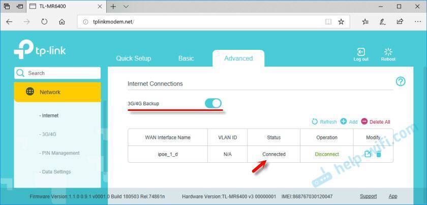 Обратите внимание на пункт “3G/4G Backup”. Его можно выключить или включить