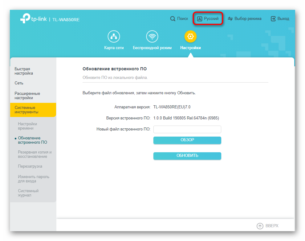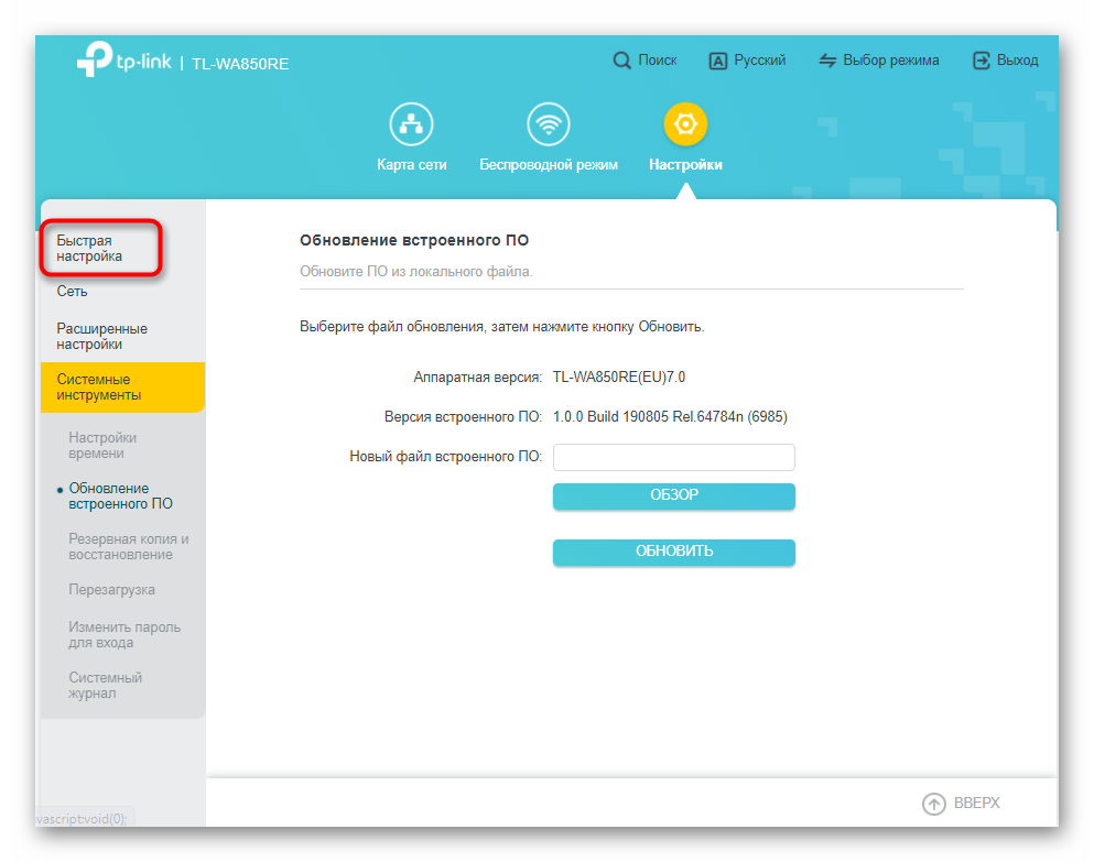 Почти все современные версии усилителей от TP-Link распространяются с новой версией прошивки, о быстрой настройке которой и пойдет речь далее. Сразу сверьте скриншоты двух вариантов, чтобы выбрать тот, который подходит, а затем выполните инструкции.