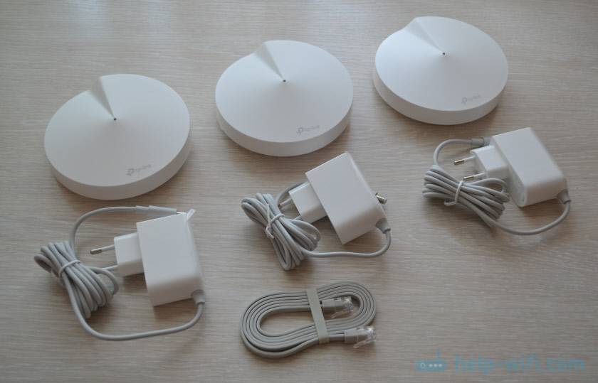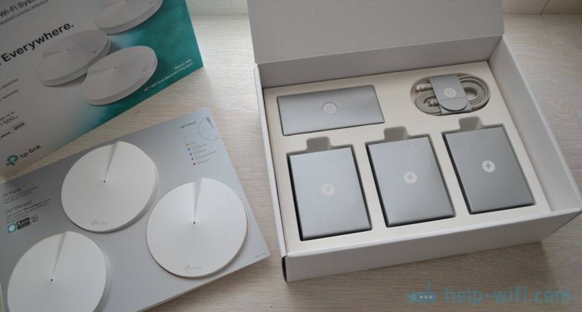 Вот так выглядит комплектация TP-Link Deco M5 из трех модулей.