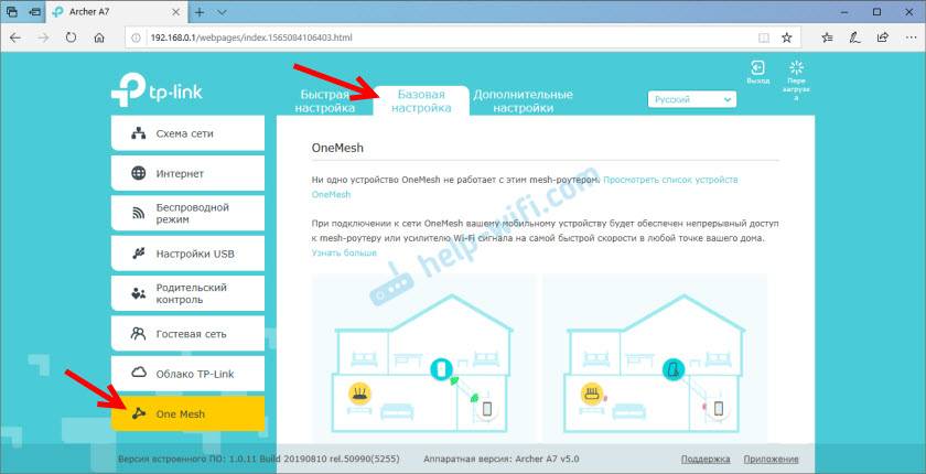 Если у вас нет такого раздела в веб-интерфейсе роутера, то убедитесь, что ваш роутер есть в списке устройств с поддержкой OneMesh (проверить можно на сайте TPLink, ссылка есть в начале статьи). Если есть – обновите прошивку.