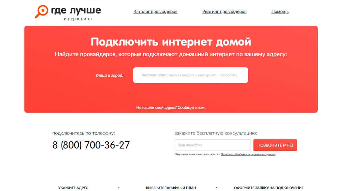 Выберите один из множества тарифных планов на домашний интернет и оставьте заявку на бесплатное подключение. Менеджер компании свяжется с вами и проконсультирует по всем вопросам. Где Лучше поможет подключить интернет и ТВ по всей России: Московская, Ленинградская, Сахалинская, Тверская область и Пермский край.