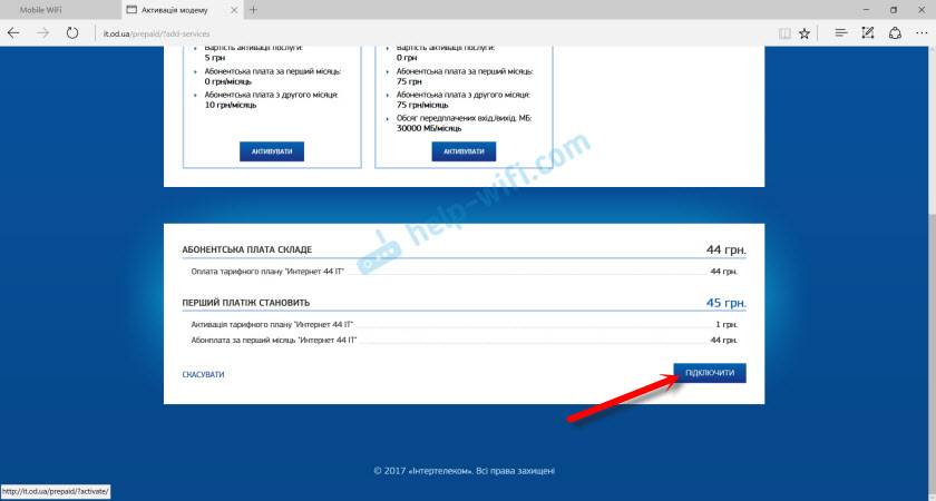 Дальше вы увидите информацию по дополнительным услугам и по своему тарифу. Будет указана сума, которую нужно оплатить. Проверяем и соглашаемся.
