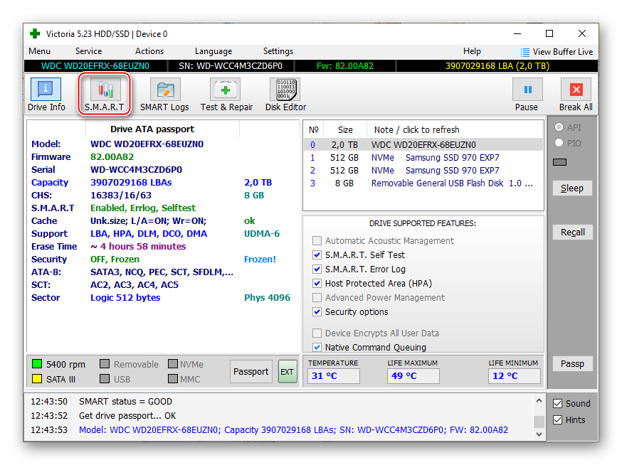 S.M.A.R.T – это технология самопроверки здоровья накопителей, включающая алгоритм прогнозирования их жизнеспособности и времени отказа.