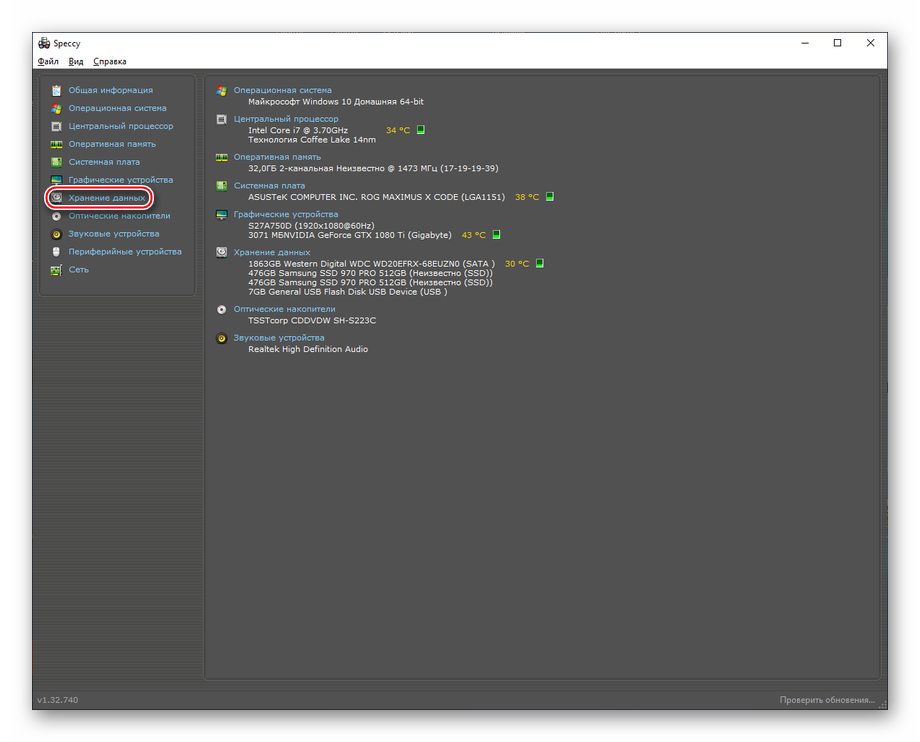 Эта специализированная программа отображает сведения S.M.A.R.T. и основную информацию об устройствах. Для того чтобы их увидеть, необходимо лишь открыть её: