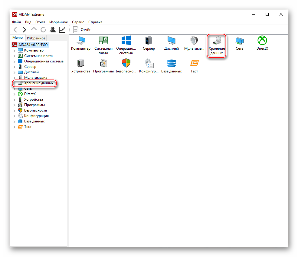 - Кликните левой кнопкой мышки по категории «Хранение данных».