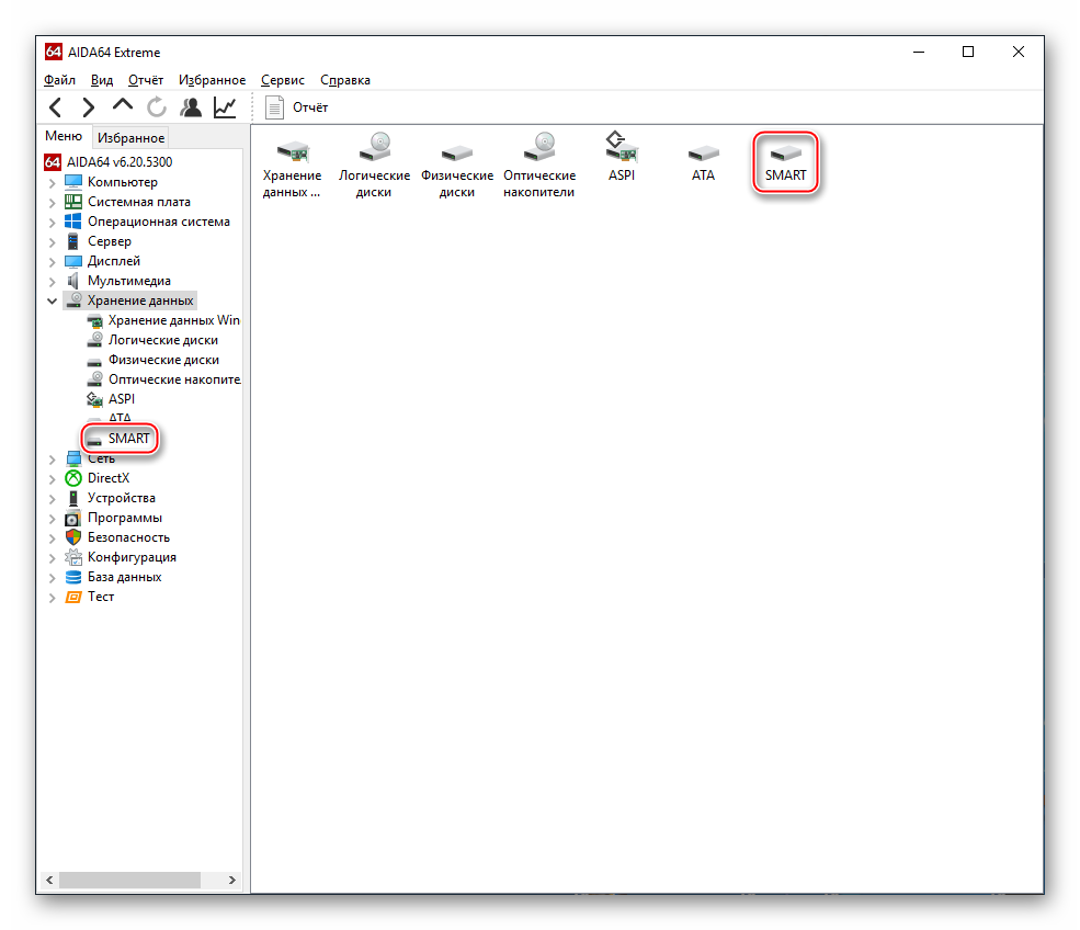 АИДА64 всё ещё пользуется огромной популярностью даже в таком деле как самодиагностика жёсткого диска. Для отображения сведений S.M.A.R.T. запустите программу и следуйте такой инструкции: