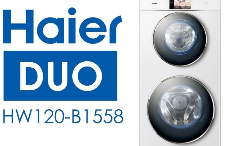 Haier Duo HW120-B1558. Конструкция этой СМА кардинально отличается от рассмотренных ранее вариантов. Если у «Элджи» второй барабан выполнен по принципу выдвижного ящика, то у «Хайер» мини-бак — фронтальный и расположен на передней панели сверху основного.