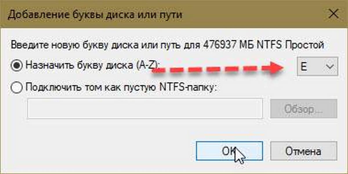 Нажмите кнопку «ОК», чтобы добавить букву диска.