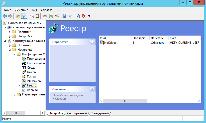 Этот способ оказался идеальным, я скрыл только требуемые диски у группы пользователей. Применяем политику через gpupdate /force и проверяем!