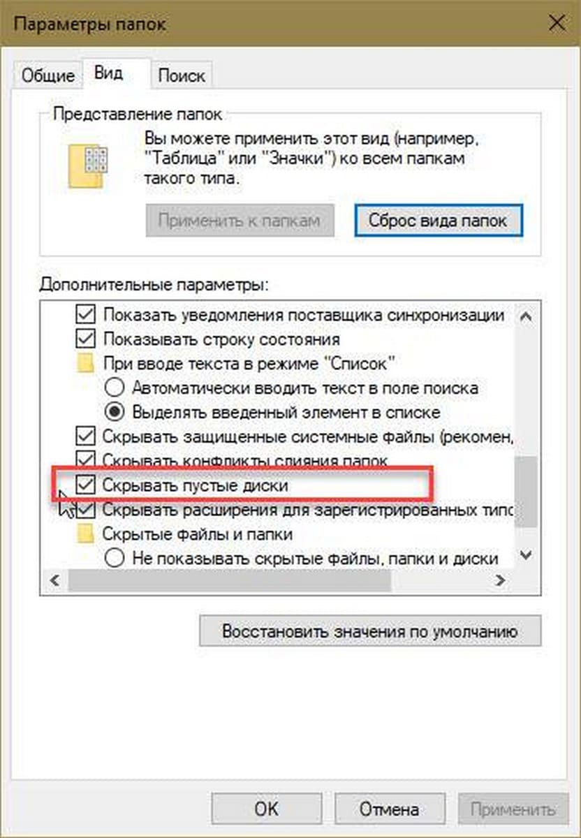 Шаг 3. В разделе «Дополнительные параметры» снимите флажок «Скрывать пустые диски».