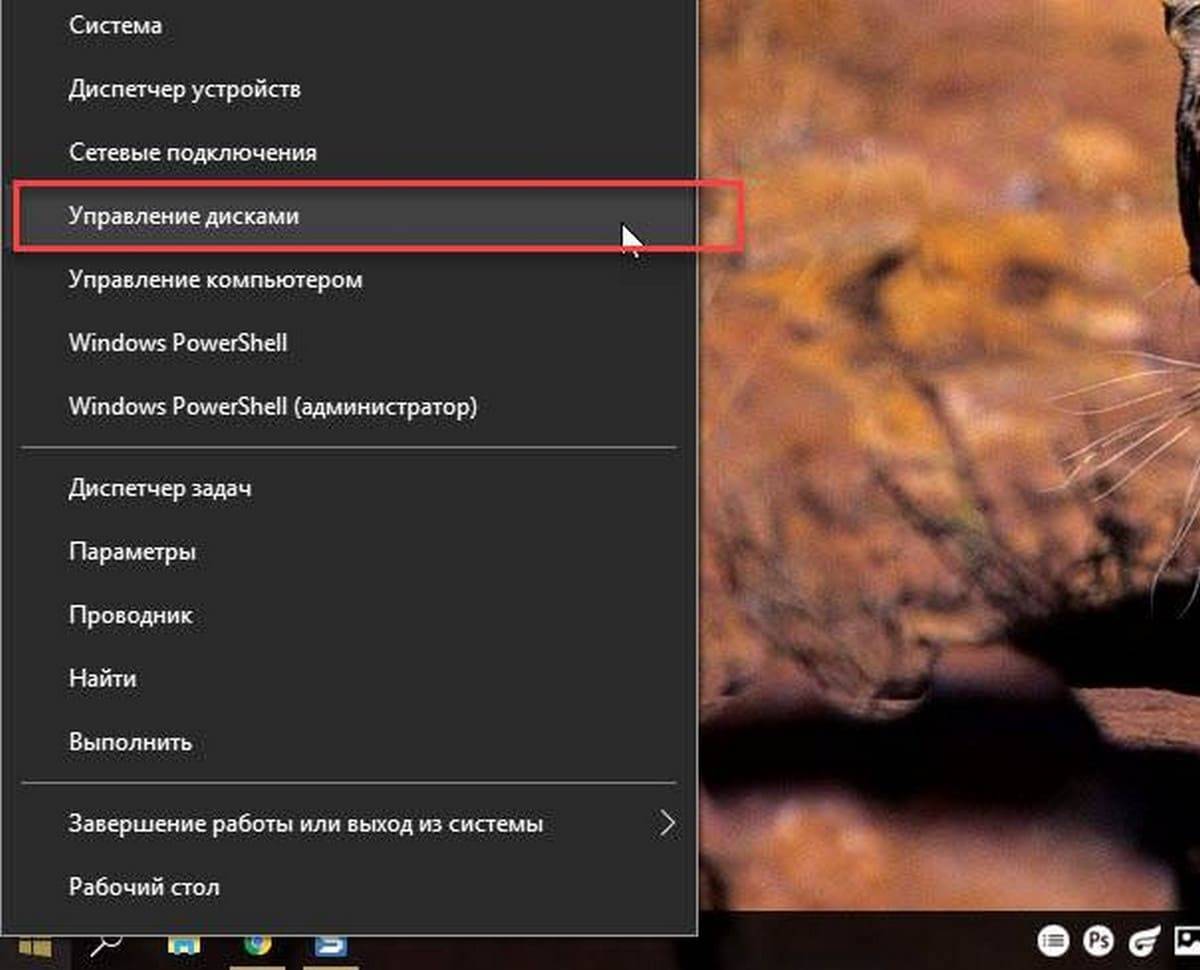 Шаг 1. Откройте Управление дисками. Для этого кликните правой кнопкой мыши на кнопке «Пуск» на панели задач и выберите «Управление дисками».
