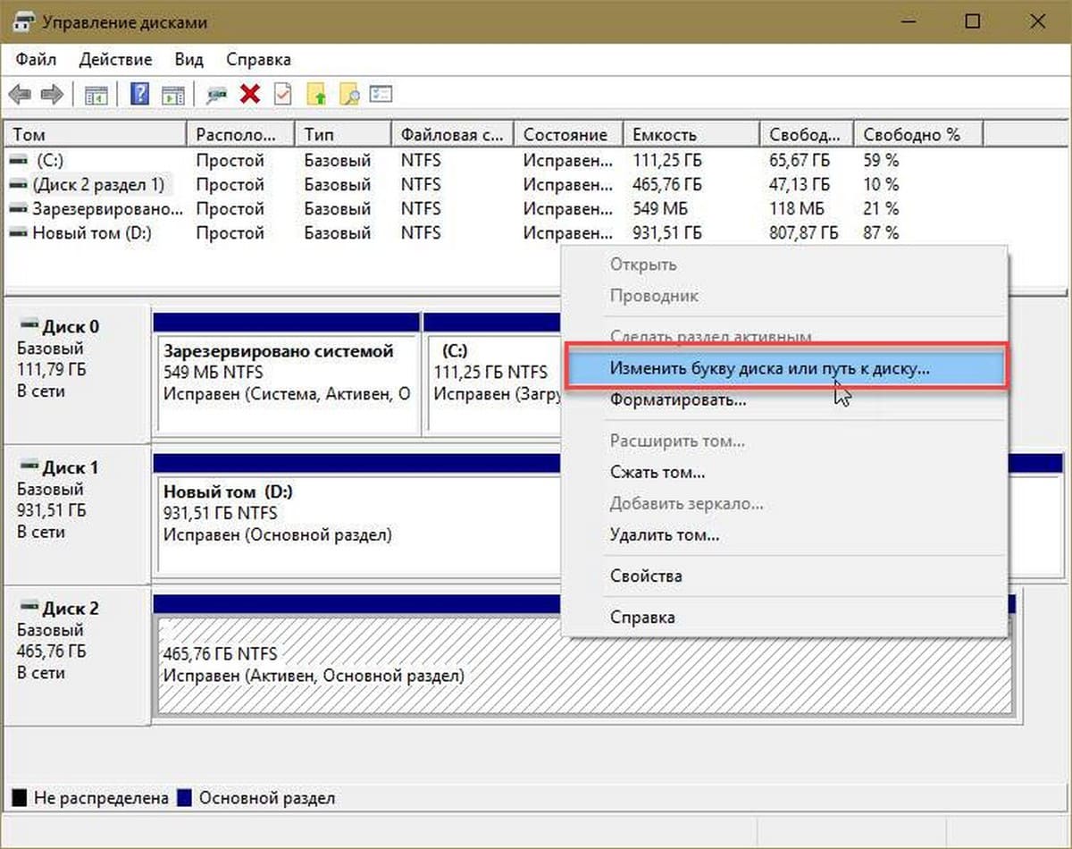 Шаг 3. Кликните правой кнопкой мыши внешний диск, который не отображается в Проводнике, а затем нажмите «Изменить букву диска или путь к диску…».