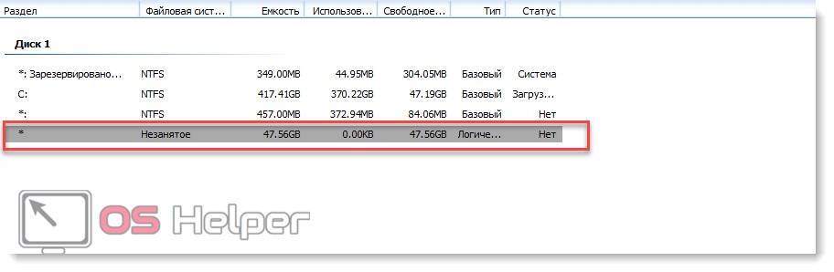 Выбранные разделы будут объединены в один, никаких других изменений вносить не нужно. Аналогичным образом вы можете объединить сразу несколько разделов, у которых напротив пространства написано — нераспределенный. Для этого им необязательно находиться в непосредственной близости друг с другом, как этого требует системная утилита от Microsoft.