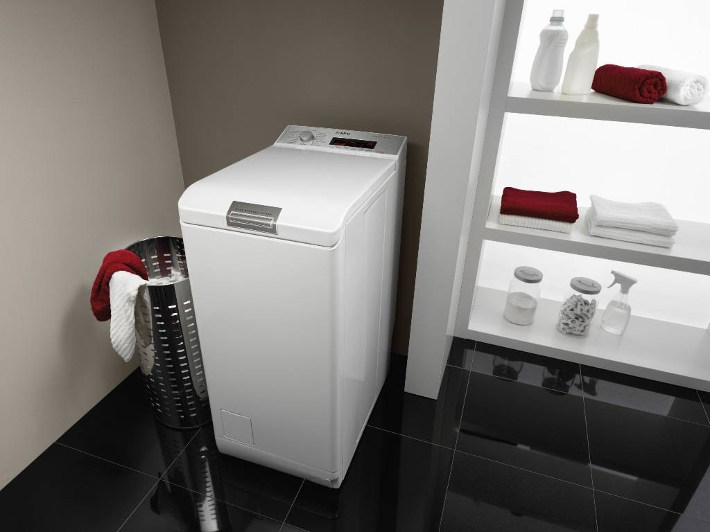 AEG L57126TL. Машинка автомат с вертикальной загрузкой кнопочным управлением и текстовым дисплеем. Имеет в арсенале 12 программ стирки, контроль образования пены, контроль дисбаланса и защиту от протечек. Максимальная загрузка вещей – 7 кг. При весе в 65 кг стиральная машина имеет следующие размеры: высота – 850 мм, глубина – 600 мм, ширина – 400 мм.